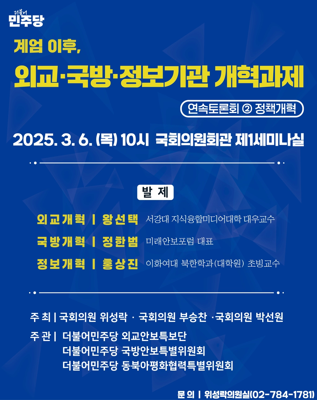 주최 : 위성락 의원실, 부승찬 의원실, 박선원 의원실