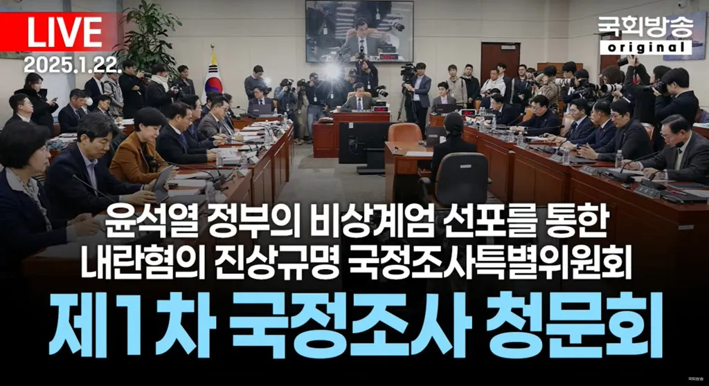 오전 10시 윤석열정부 비상계엄 선포를 통한 내란혐의 진상규명 국정조사 특별위원회에서 제1차 국정조사 청문회가 열렸음. 국회방송 유튜브 채널에 생중계 영상으로 1부, 2부로 나뉘어 게시되었고 이 영상은 그중 1부에 해당됨.